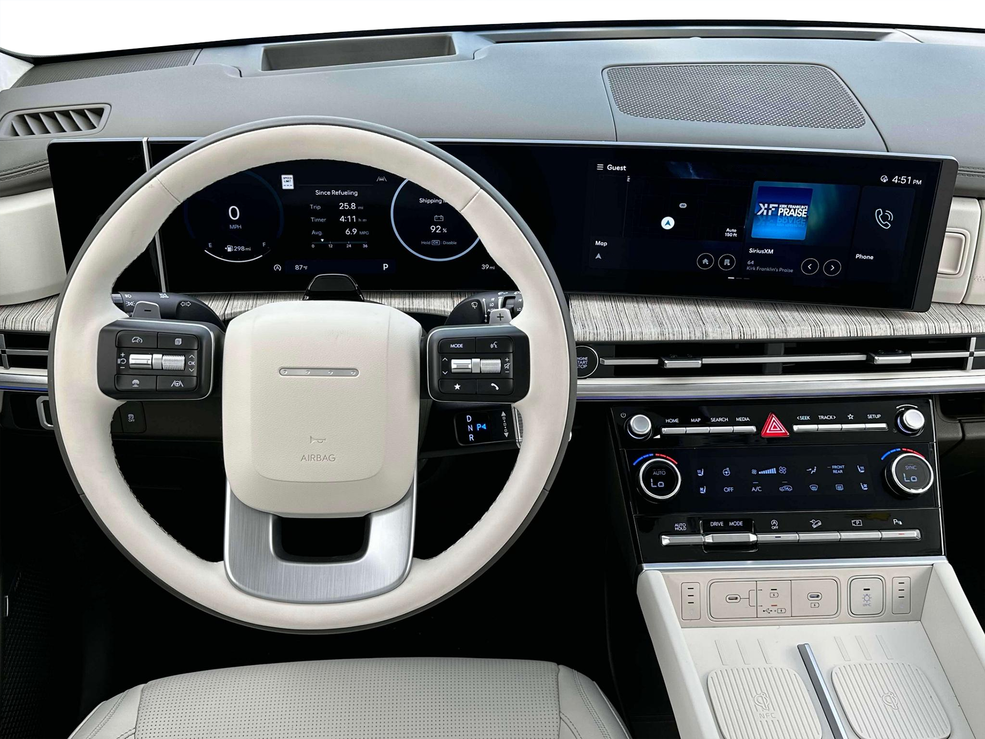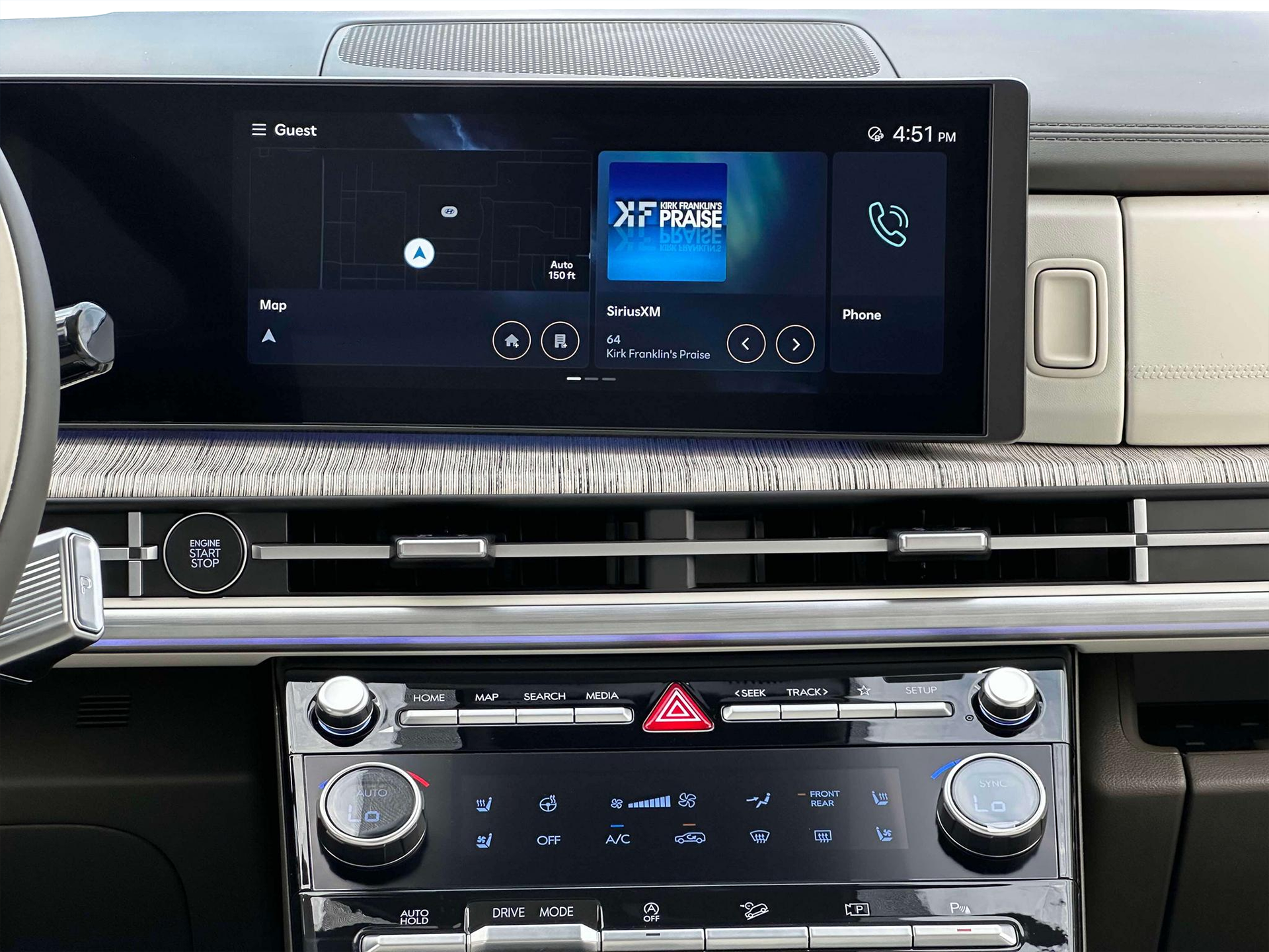 • Radio: AM/FM/HD Bose Premium Audio System -inc: 12 speakers including subwoofer, external amplifier, 12.3" wide touchscreen, Apple CarPlay and Android Auto, Bluetooth® hands-free w/wireless audio streaming, dynamic voice recognition, USB connectivity, SiriusXM, Blue Link+ connected car system, navigation system including traffic flow w/incident data via HD Radio (HERE) and rear seat quiet mode
