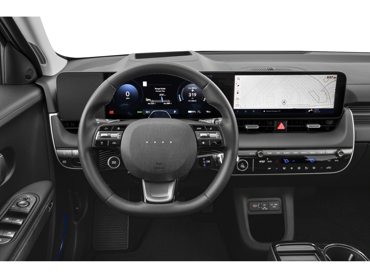 - Radio: AM/FM/SiriusXM/HD Audio System -inc: 12.3" digital instrument cluster w/EV technology display, navigation infotainment system, wireless Android Auto and Apple CarPlay integration, Blue Link+ connected car system, vehicle Wi-Fi hotspot, Bluetooth® w/phonebook transfer; Hyundai Pay, dynamic voice recognition, USB input, Over-the-Air (OTA) Controller ECU, map/multimedia software update capability and Bose premium audio system w/8 speakers including subwoofer and external amp