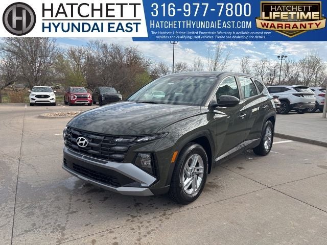 2026 Hyundai Tucson SE Rockwood Green For sale at Hatchett Hyundai East in Wichita Kansas. ** Multi Point Inspection and all Necessary Maintenance & Reconditioning Items are Performed to Strict Hatchett Standards** Complete Detail of Exterior and Interior. Odometer is 4184 miles below market average! ** Lifetime Warranty, ** One Owner, ** Local Trade In, ** No Accidents, ** Backup Camera, ** Bluetooth® Connectivity, ** Apple CarPlay/Android Auto, ** Automatic Headlights, ** Forward Collision-Avoidance Assist w/Pedestrian Detection, ** Rear Cross-Traffic Collision-Avoidance Assist, ** Adaptive Cruise Control, ** Lane Keep Assist, ** Sirius XM Radio Capable, Option Group 01.